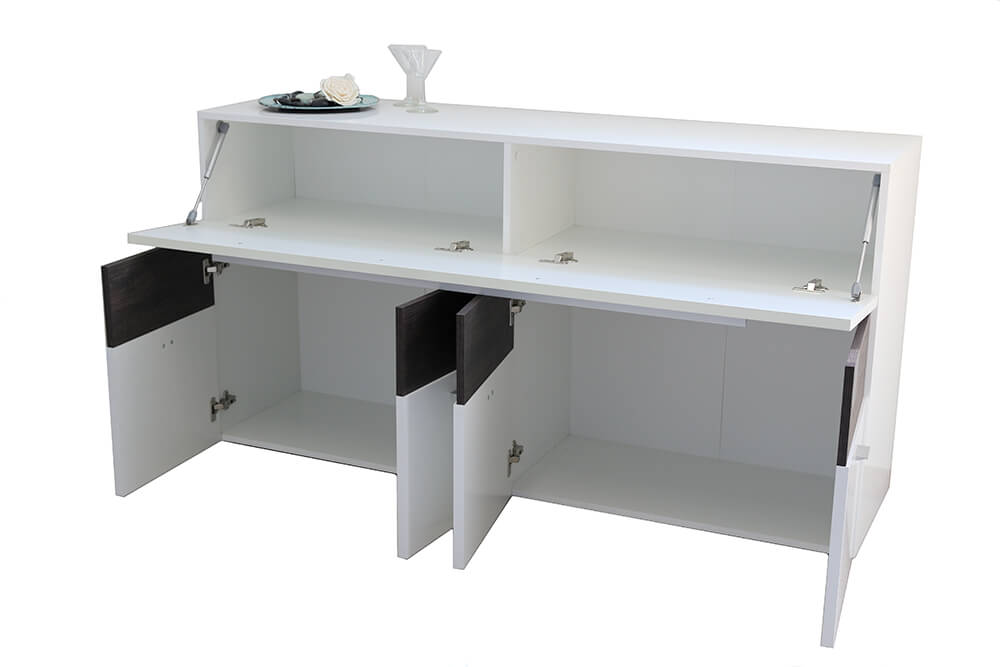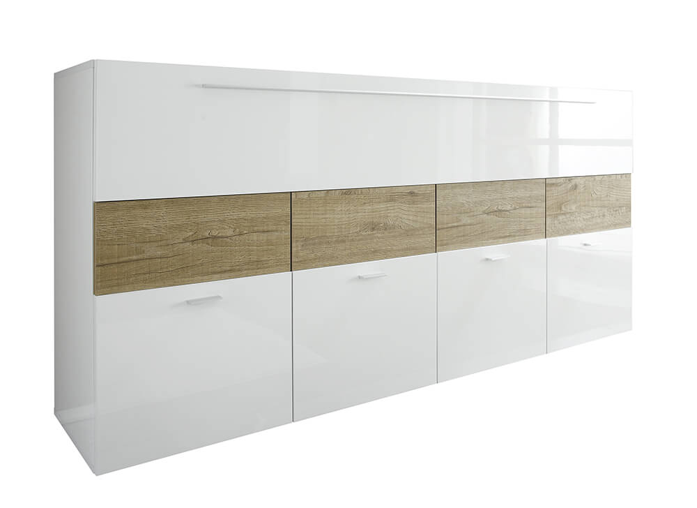 Credenza Mobile da Salotto 4 Porte 1 Anta a Ribalta 85x161x43cm TFT Cube Bianco Lucido e Miele