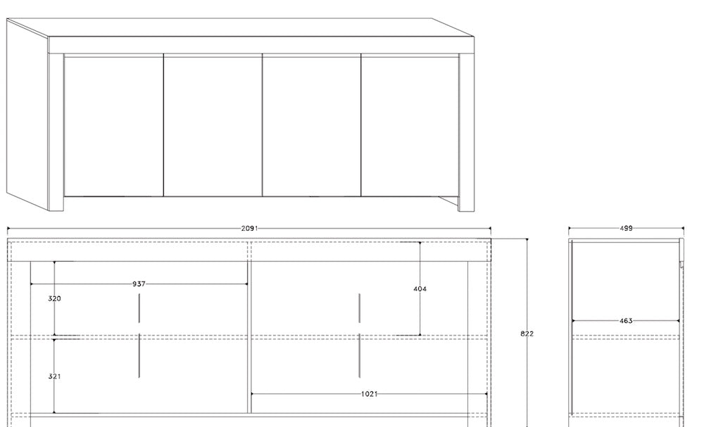 Credenza Mobile da Salotto 4 Porte 210x50x82cm TFT Amber Bianco Lucido