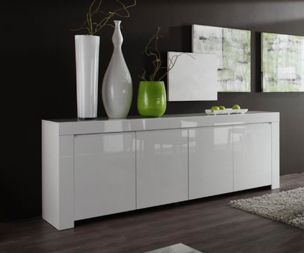 Mobile Madia Credenza 4 Porte 210x50x82cm TFT Amber Bianco Lucido