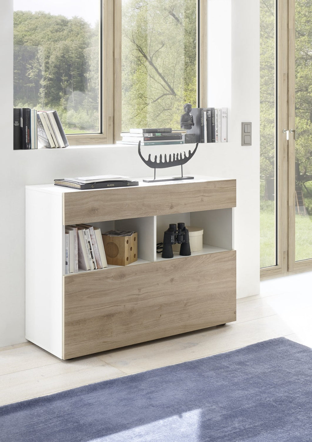 Credenza Mobile Soggiorno 1 Anta 2 Vani 111x42x82 cm TFT Akira Bianco e Naturale