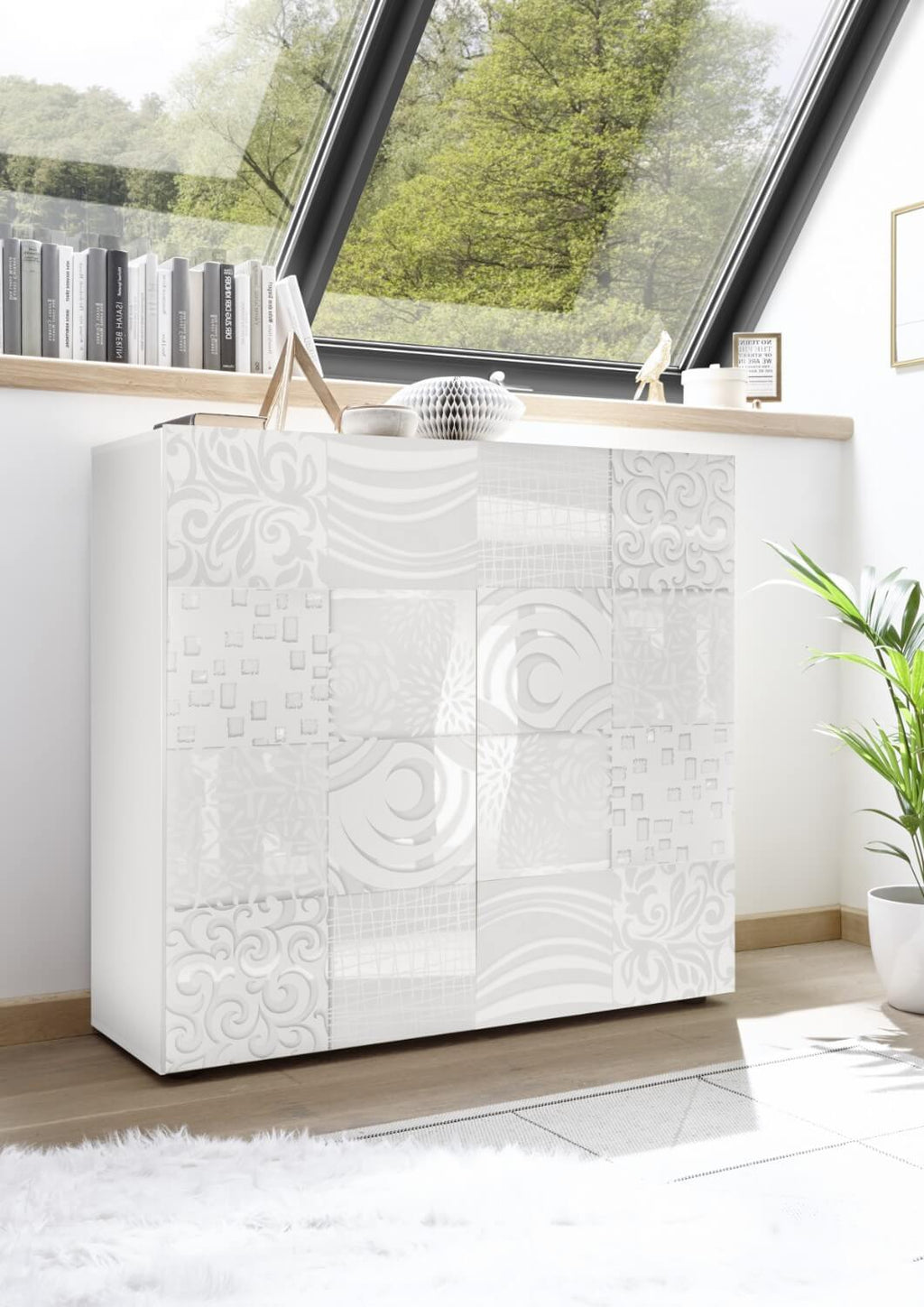 Credenza Mobile Soggiorno 2 Ante in Melaminico 120x42x110cm TFT Blossom Bianca