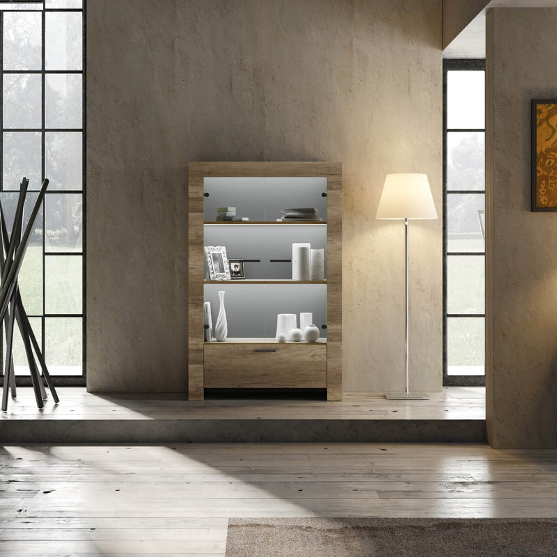Credenza Mobile Soggiorno con Vetrina 2 Ante in Melaminico 102x43x158cm TFT Sax Rovere