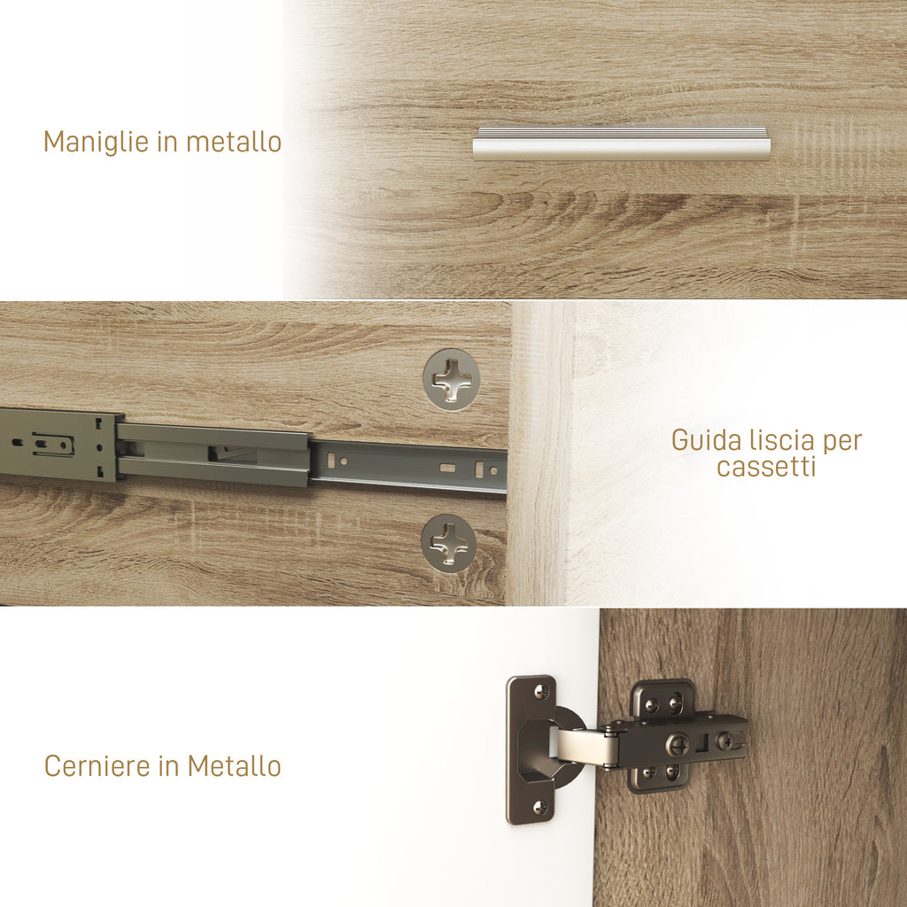 Credenza Moderna 106x35x76 cm con 3 Armadietti e 2 Cassetti color Legno
