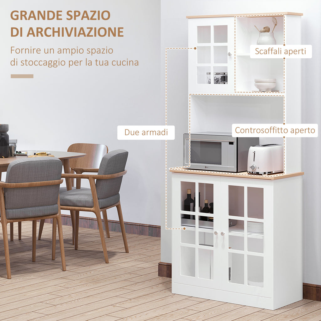 Vuoi decorare la tua casa e, allo stesso tempo, tenere tutti i tuoi accessori in ordine? Questa credenza è perfetta per arredare la tua cucina o la tua sala da pranzo con uno stile classico e moderno, che non passerà mai di moda. Il mobile è costruito con pannelli MDF ed è composto da: 2 vetrinette, uno scaffale e un piano di lavoro centrale. Questa credenza combina perfettamente eleganza e funzionalità , e ti aiuterà a tenere piatti, bicchieri e pentole sempre in vista, e sempre ordine.