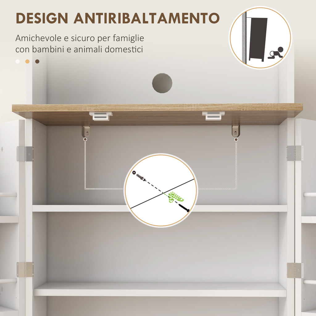 Credenza Moderna Dispensa da Cucina Porta Microonde 60x35x169 cm Armadietto con Portaspezie Bianco