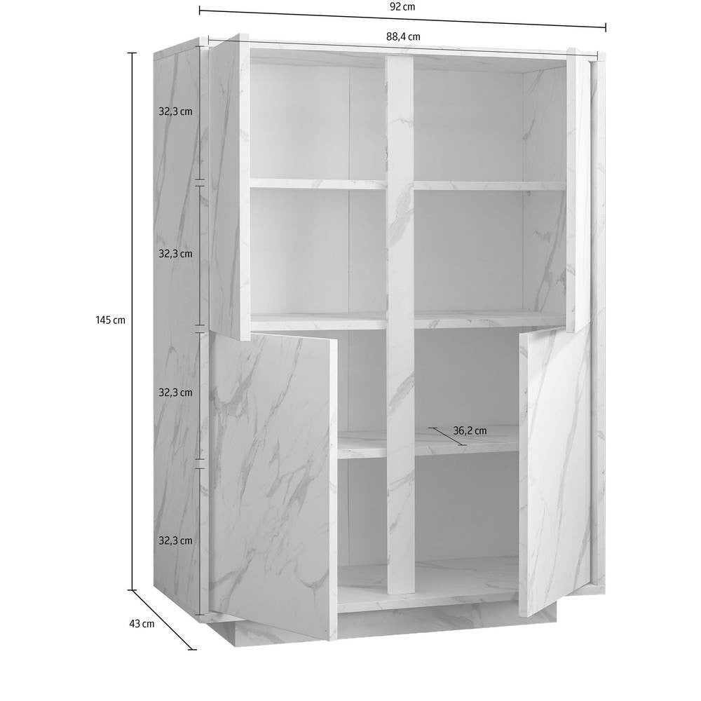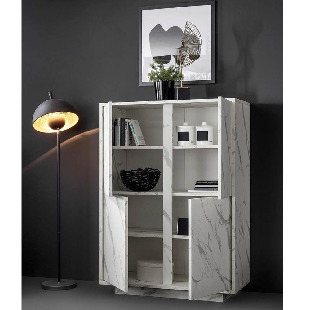 Credenza Rock 4 ante effetto marmo bianco 92x43x145h cm