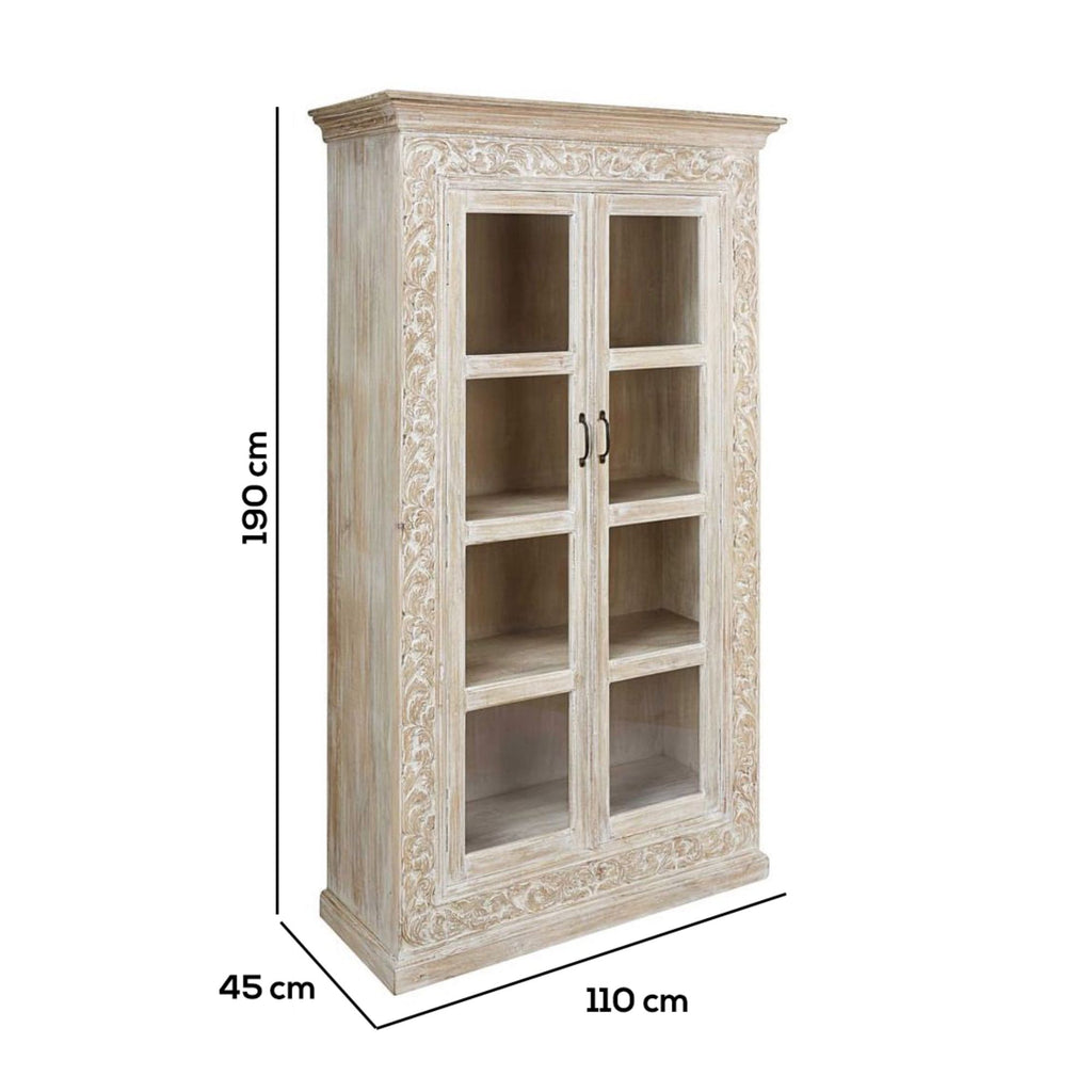 Fregi dal raffinato ed elegante design ornano la credenza Timor. I quattro ripiani interni consentiranno di sistemare con stile qualsivoglia oggetto. Solida ma elegante è perfetta per un living o una cucina dall'arredo classico o shabby.