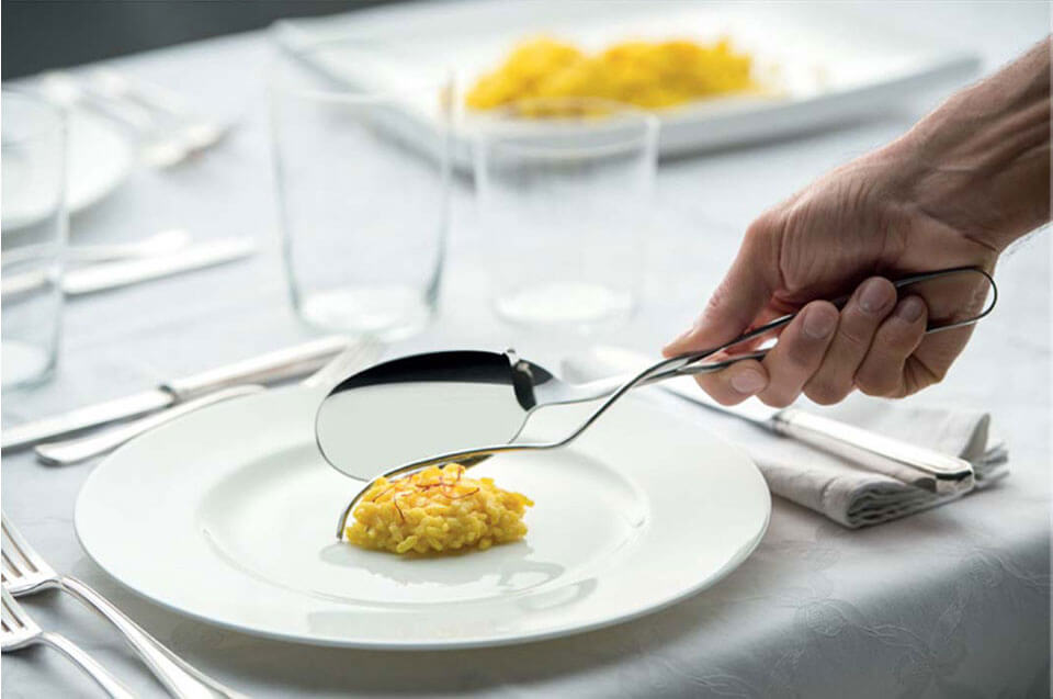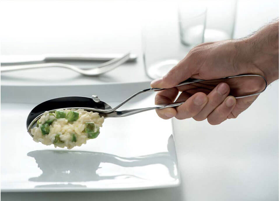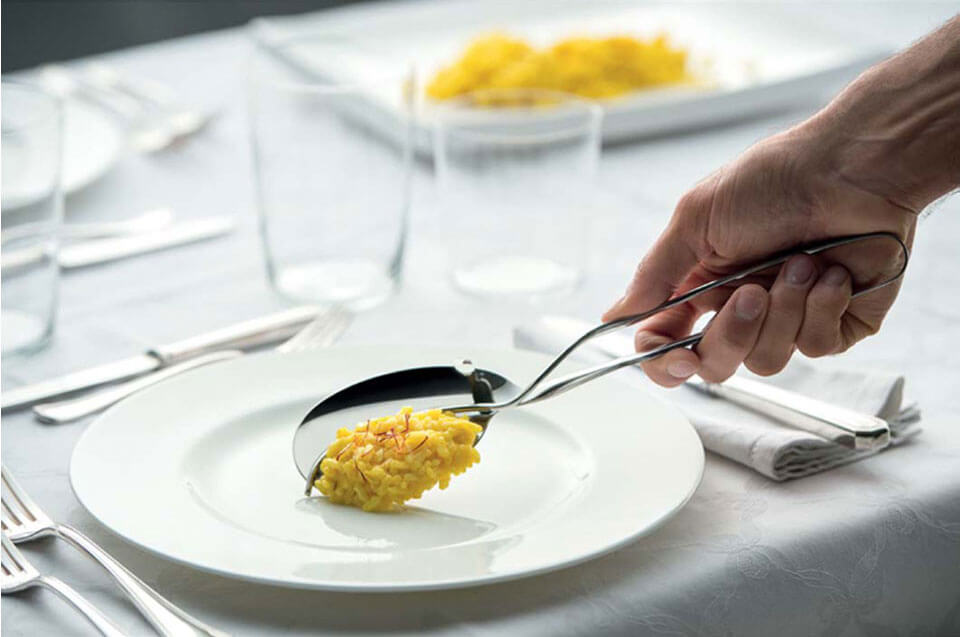 Il Tergicucchiaio permette di servire porzioni precise e veloci grazie al braccio mobile. Consente di servire con professionalità, maneggevolezza ed eleganza tutti i cibi che solitamente si attaccano al cucchiaio tradizionale.