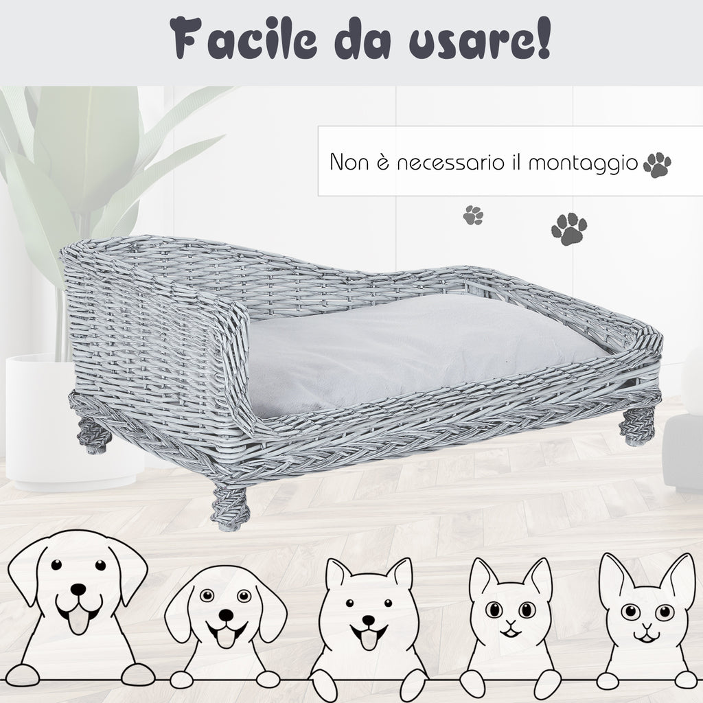 Cuccia Chaise Longue per Animali Domestici 69x42x33 cm in Vimini Grigia