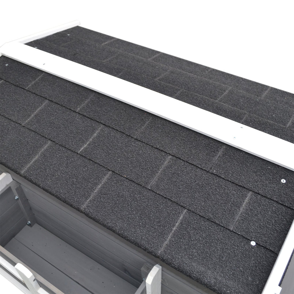 Cuccia da Esterno Rialzata con Balconcino e Tetto Impermeabile in Legno Grigio 83x66.5x74.7 cm