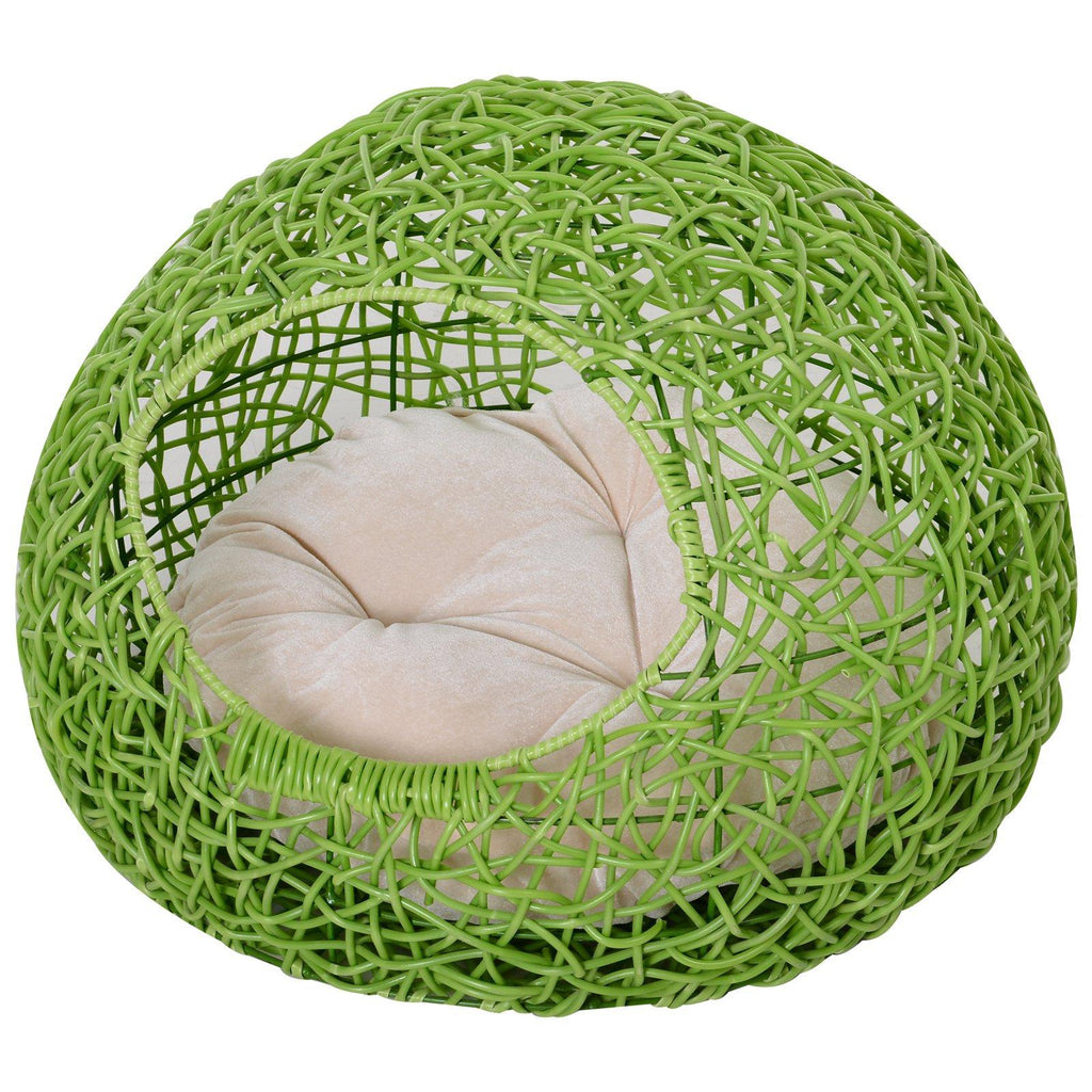 Cuccia in PVC Effetto Rattan per Gatti Ø56x40 cm con Cuscino Verde