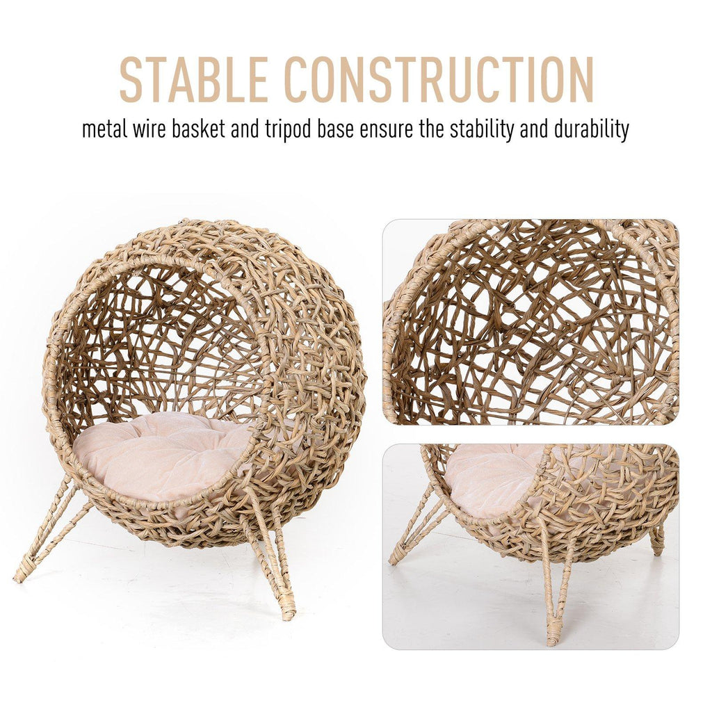 Cuccia in PVC Effetto Vimini per Gatti Ø52x58 cm con Cuscino Marrone Chiaro