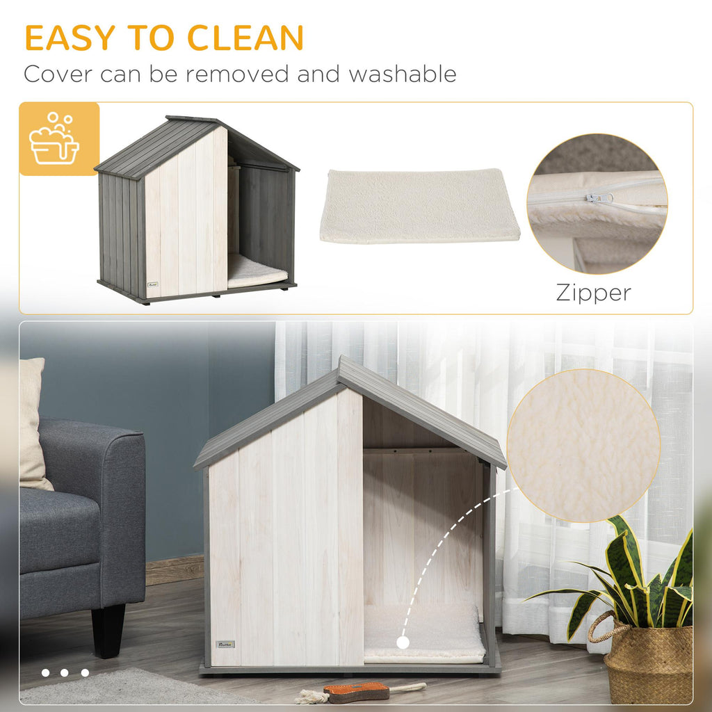 Cuccia per Cani a Casetta 83,5x54x82,5 cm in in Legno di Pino Grigio e Bianco