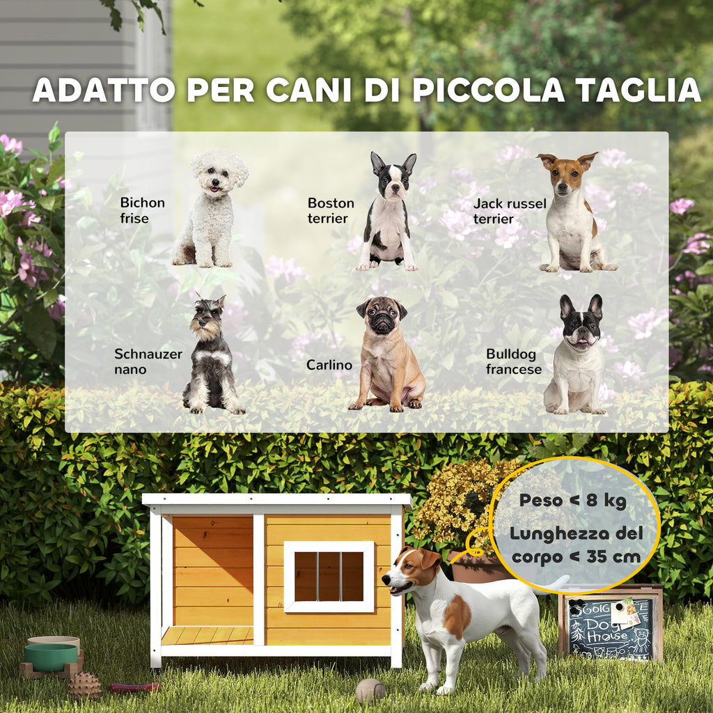 • STRUTTURA ROBUSTA: Realizzata in legno massello di abete, la nostra cuccia da esterno per cane è ideale per gli animali di piccola taglia con un peso fino a 8 kg. La finitura resistente all'acqua e il tetto inclinabile in bitume assicurano affidabilità