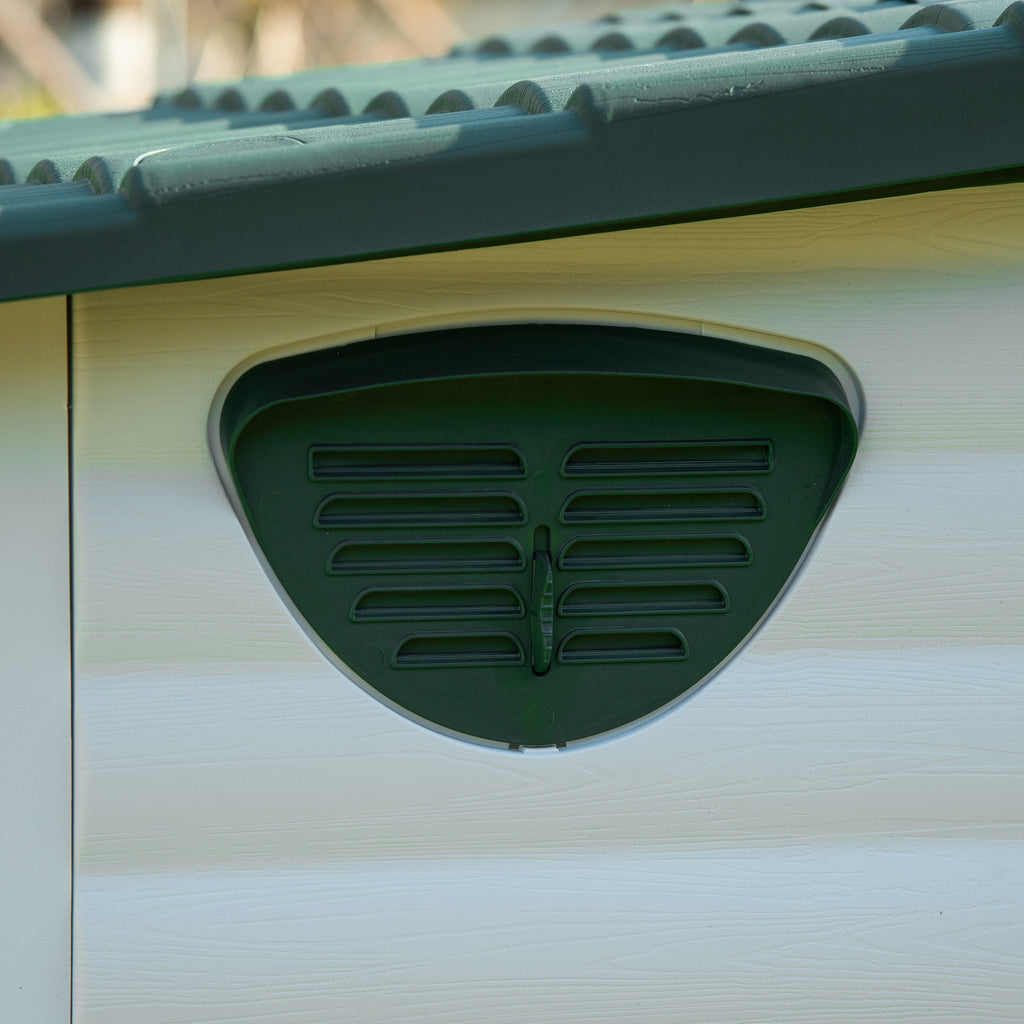 La cuccia per cani a casetta diventerà il posto preferito dei tuoi amici a 4 zampe per riposare e rilassarsi. È dotata di una presa d'aria che può essere aperta e chiusa, per una migliore ventilazione o per proteggere dal vento. La porta ha l'apertura reversibile ed è presente un pannello laterale rimovibile per facilitare l'accesso. Grazie alla solida struttura in PP questa casetta per cani è ideale da usare negli spazi aperti.