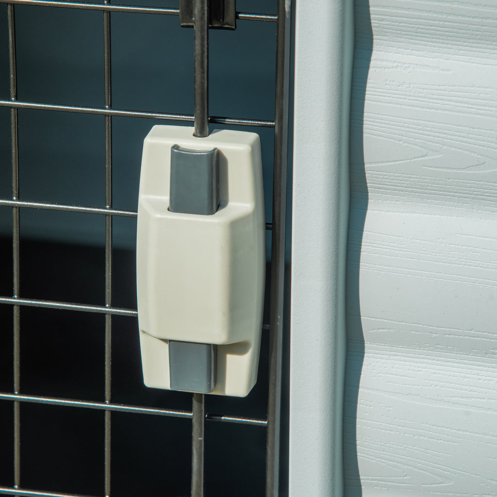 - FACILE ACCESSO E USCITA: È dotata di un cancelletto in filo metallico con apertura reversibile e pannello laterale apribile per facilitare l'entrata e l'uscita dei cani nella cuccia in plastica.