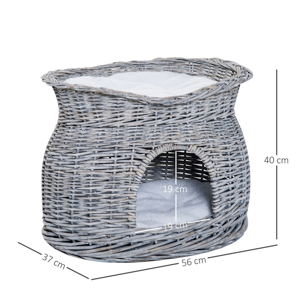 Cuccia per Gatti 2 Ripiani 56x37x40 cm in Vimini Grigio e Bianco