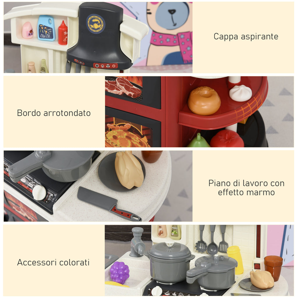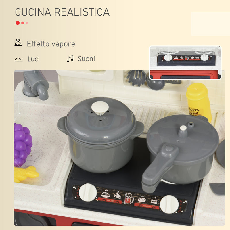 Stupisci i tuoi pioccoli chef con la cucina giocattolo . Include 52 accessori tra cui padelle, cibi, utensili e condimenti per inventare tante nuove ricette.In più i fornelli sono dotati di luci e suoni che simulano il funzionamento, mentre il rubinetto può erogare acqua. Robusta e sicura, la cucina per bambini stimola la fantasia e la voglia di imparare, ed è perfetta per giocare da soli o in compagnia!