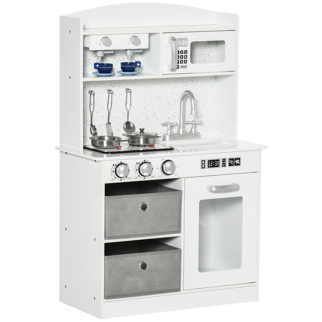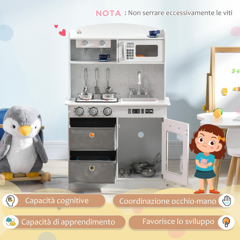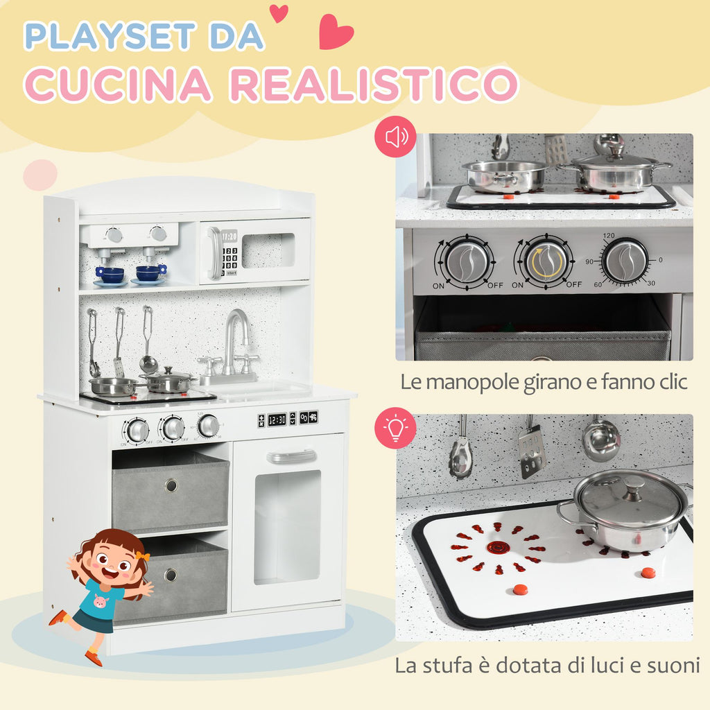 Cucina Giocattolo per Bambini 60,1x31,7x92,9 cm con Luci e Utensili in MDF e PP Bianca
