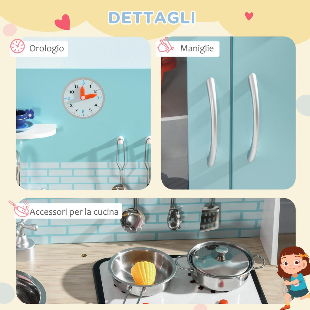 Cucina Giocattolo per Bambini 65x29x81 cm con Luci e Utensili in MDF e PP Azzurra