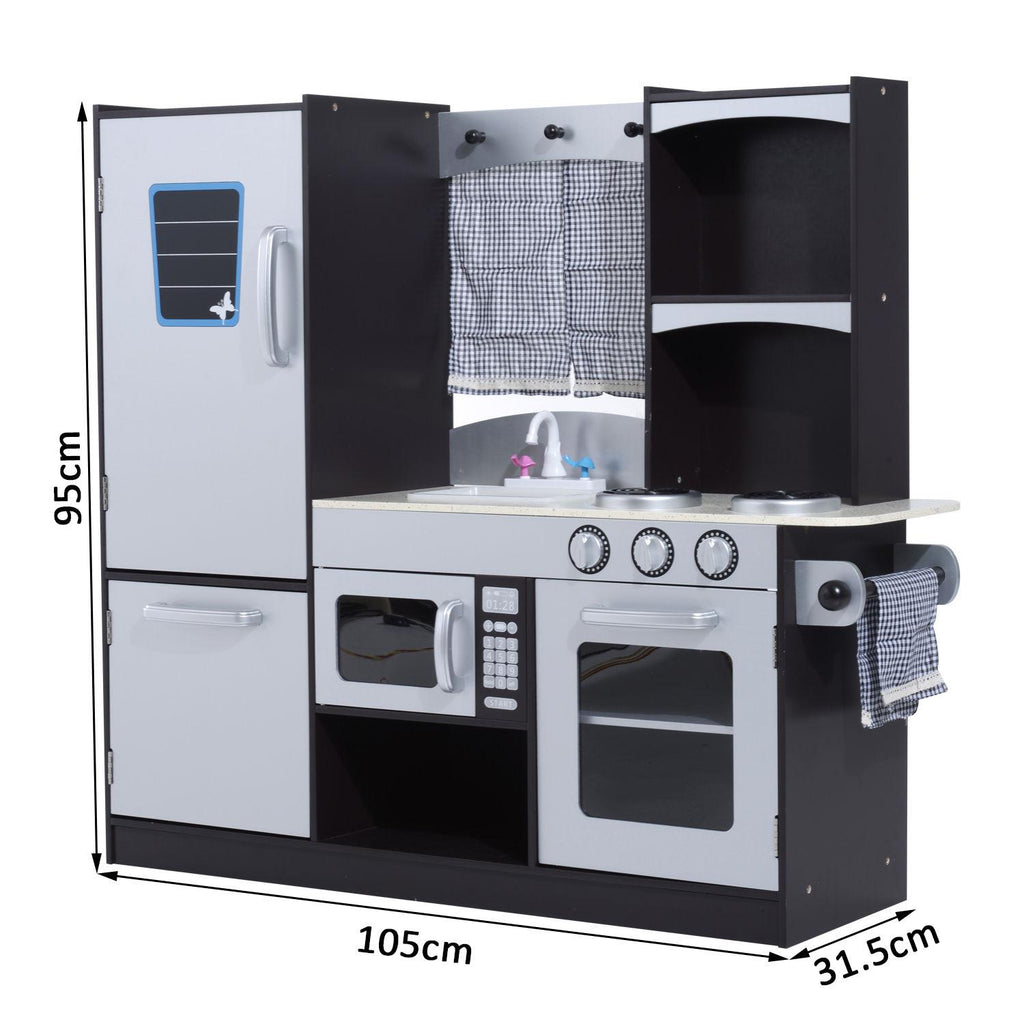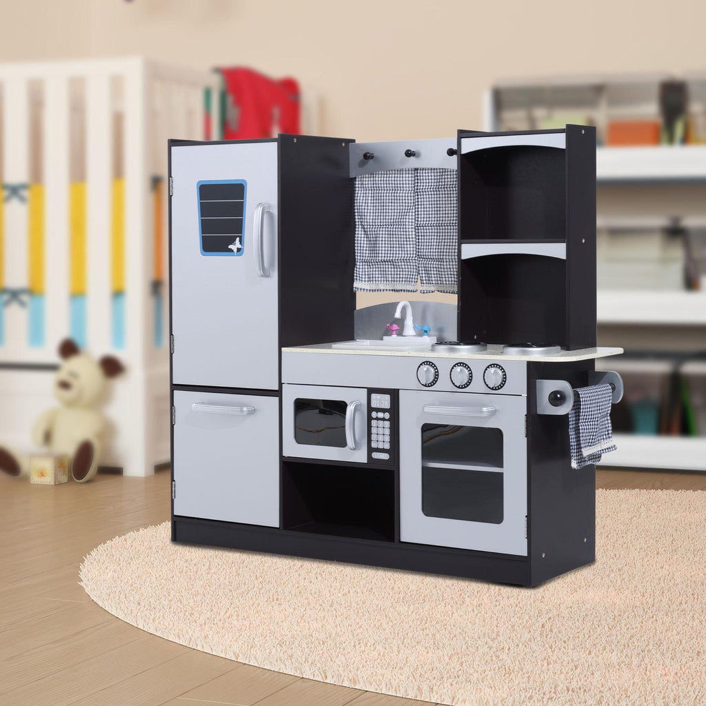 Cucina Giocattolo per Bambini con Frigo e Microonde Nera e Grigia