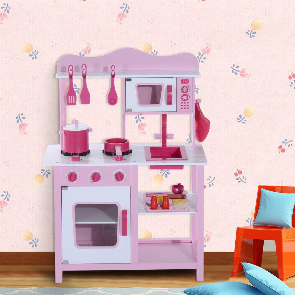 Cucina Giocattolo per Bambini in Legno Rosa 60x30x84.5 cm