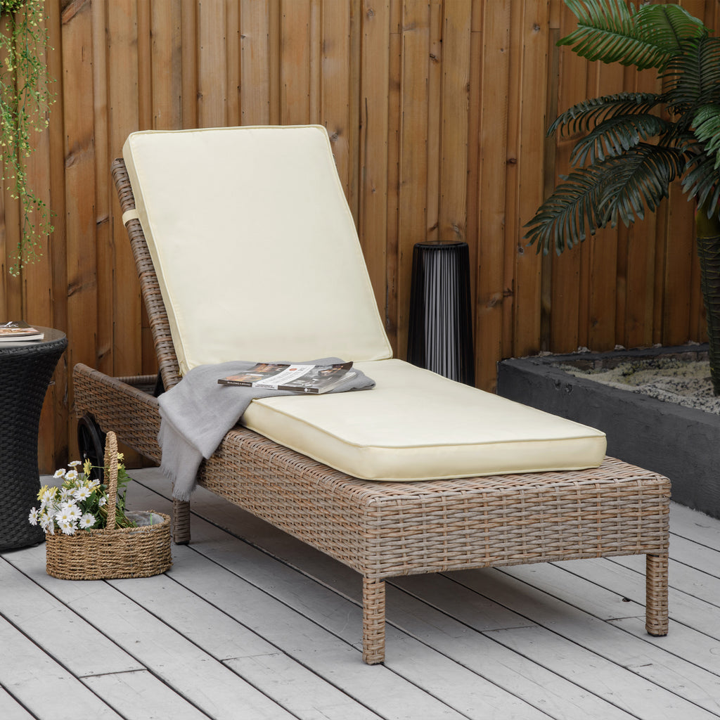 Trasforma il tuo lettino prendisole con questo cuscino per sdraio di . È realizzato con un rivestimento in tessuto di poliestere, che lo rende morbido e delicato sulla pelle, e con un'imbottitura ad alta densità per un sostegno ottimale. Si adatta alla maggior parte delle sedie a sdraio e ha dei lacci ai lati per fissarlo saldamente. Ti aiuterà a goderti il sole con maggiore comodità!