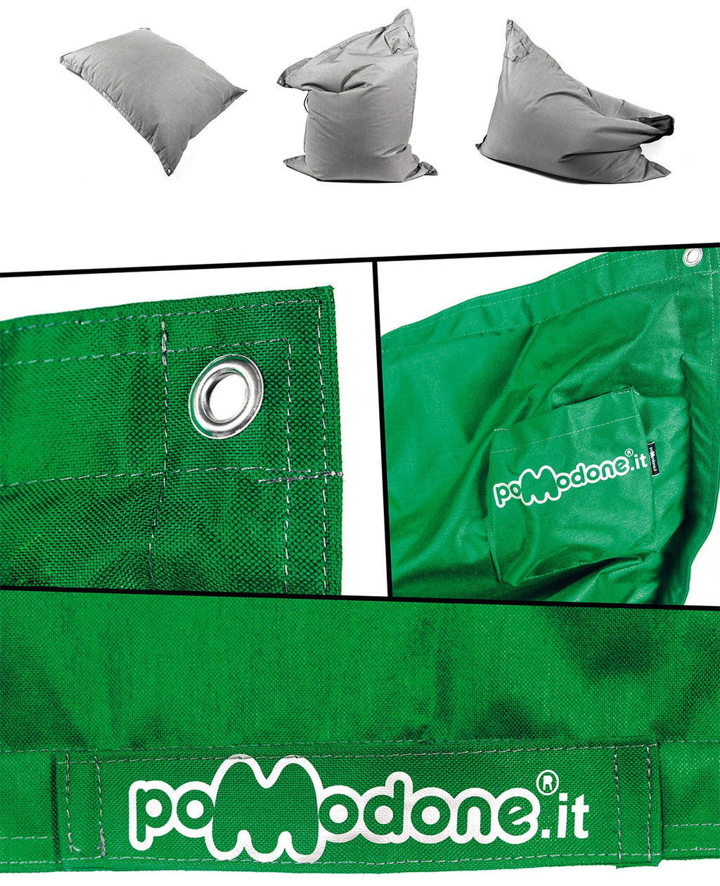 - I materiali utilizzati sono ignifughi, completamente impermeabili e resistesti ai raggi UV e agli agenti atmosferici. Le morbide imbottiture che li compongono li rendono complementi morbidi e confortevoli sedute. Facilmente trasportabili per la loro leggerezza e per la comoda maniglia laterale possono essere impilati e riposti in maniera ordinata e assolvere le eventuali esigenze di spazio.