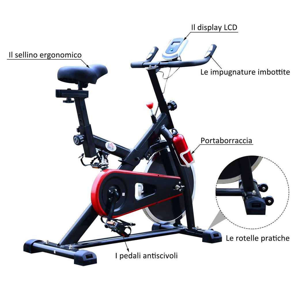 - Cyclette spin bike pratica dal design ergonomico, ideale per allenarsi a casa o in palestra.