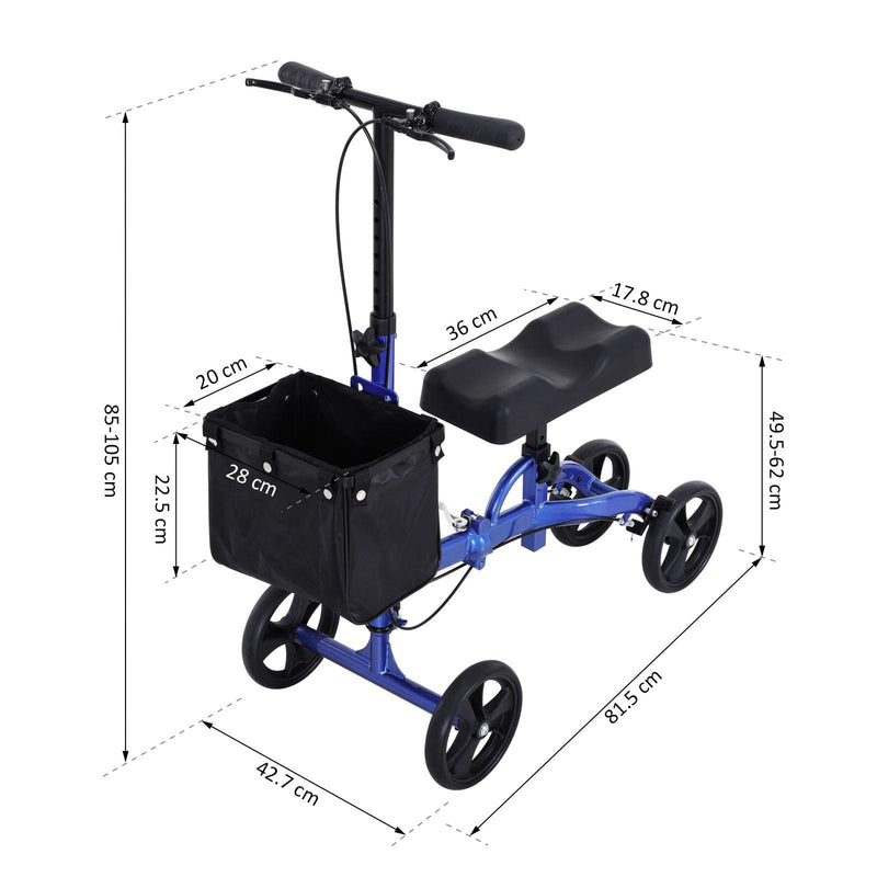 Deambulatore Pieghevole per Ginocchio 4 Ruote Blu