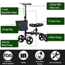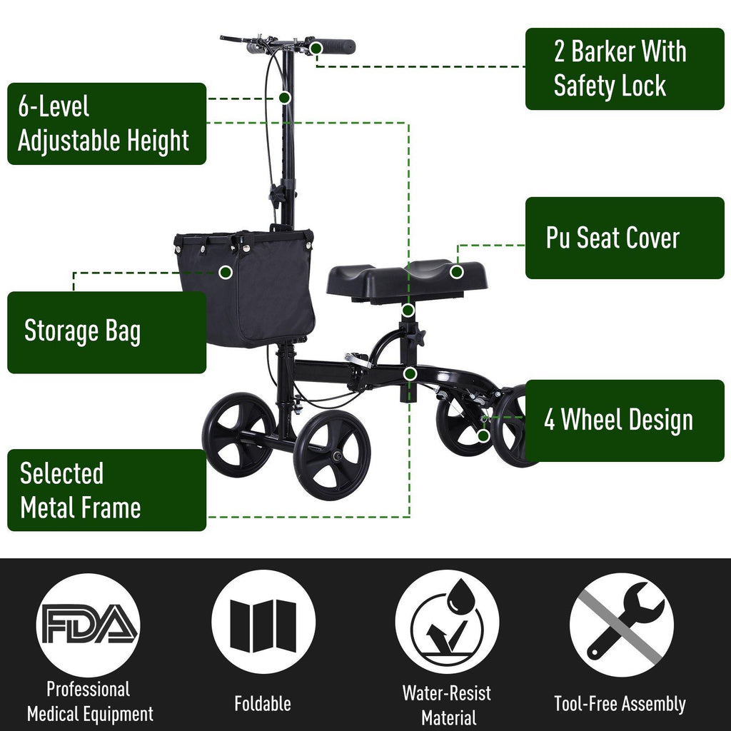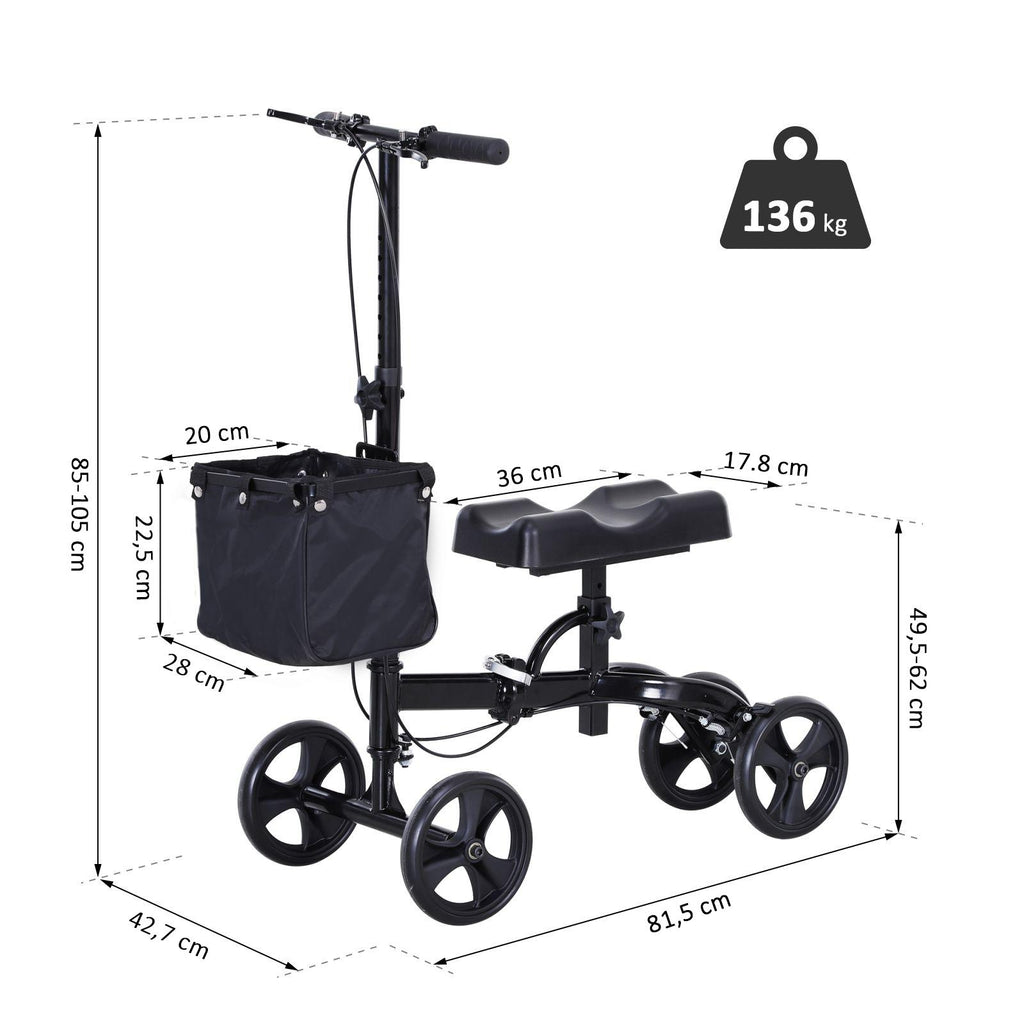 Deambulatore Pieghevole per Ginocchio 4 Ruote Nero