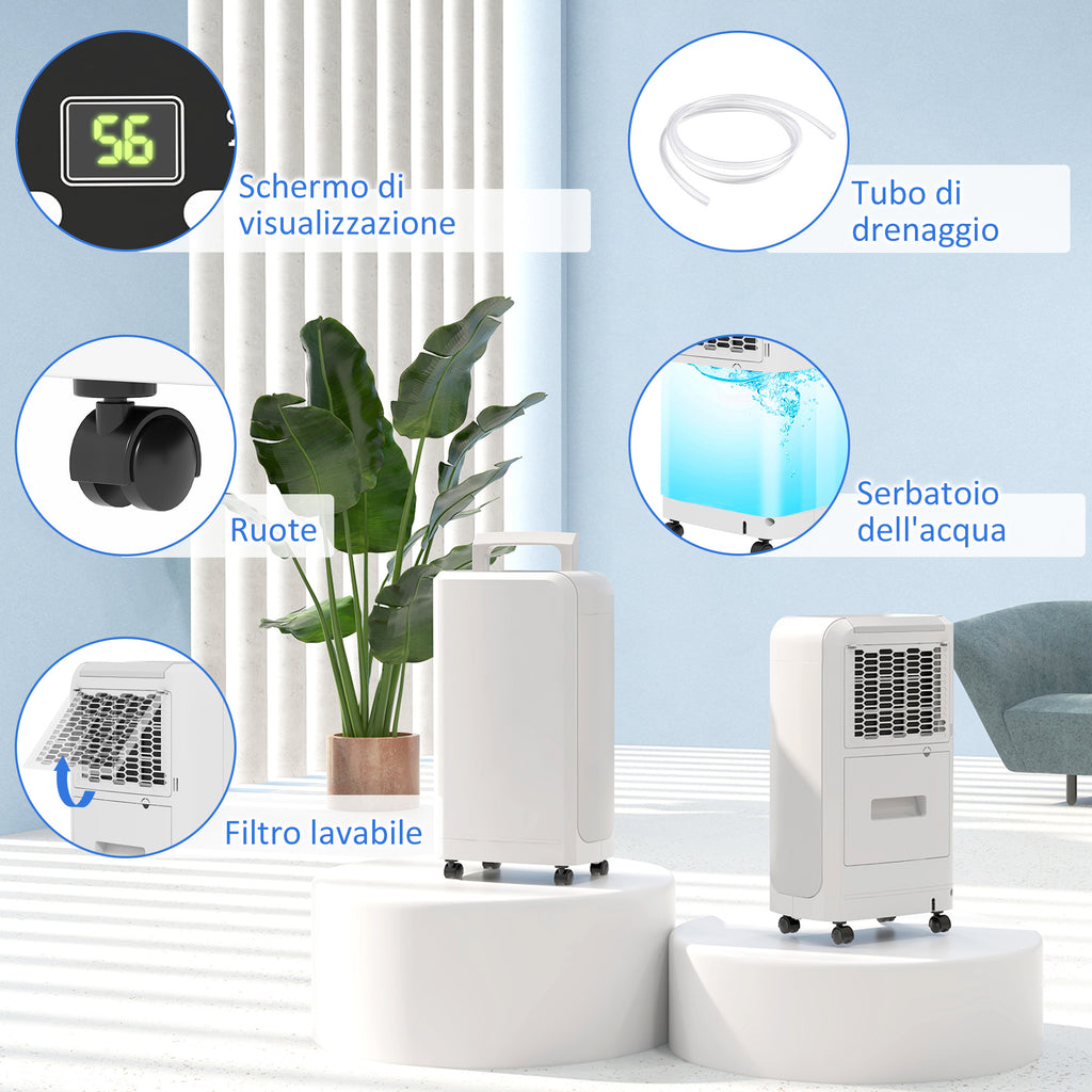Deumidificatore Portatile Touch da 12L con Tubo di Scarico 28x18x50,6 cm Bianco