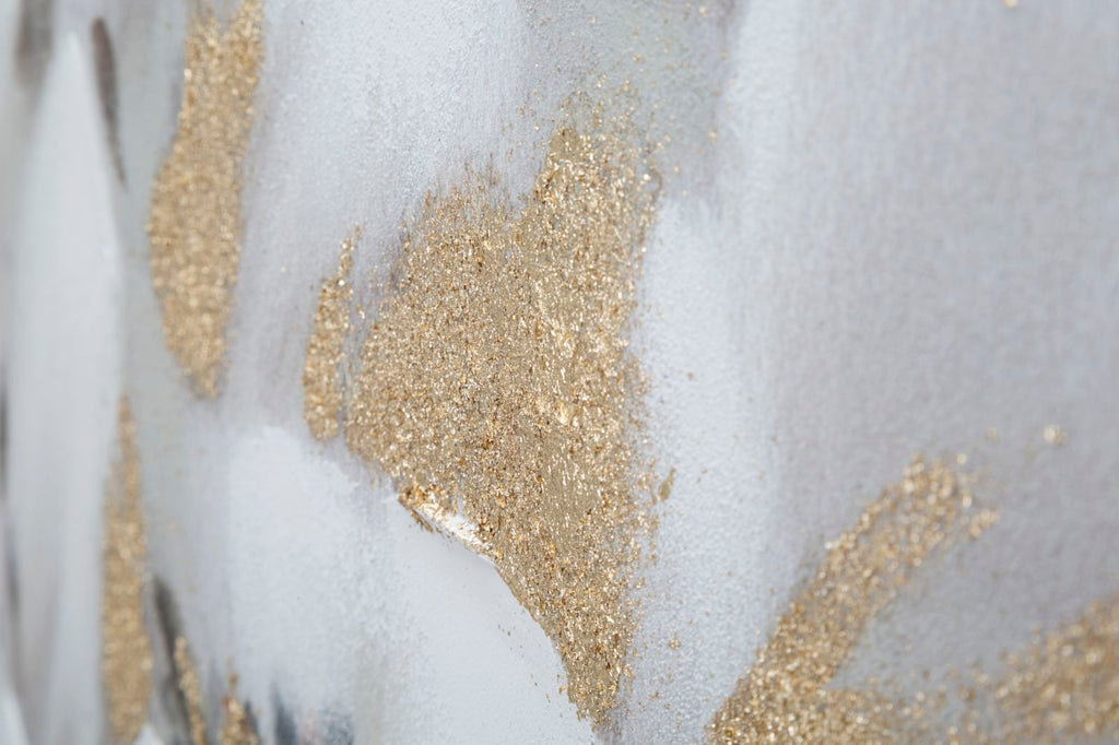 Dipinto su Tela Bianco/Oro Flower 80x3,7x100 cm in Legno di Pino e Canvas Multicolor