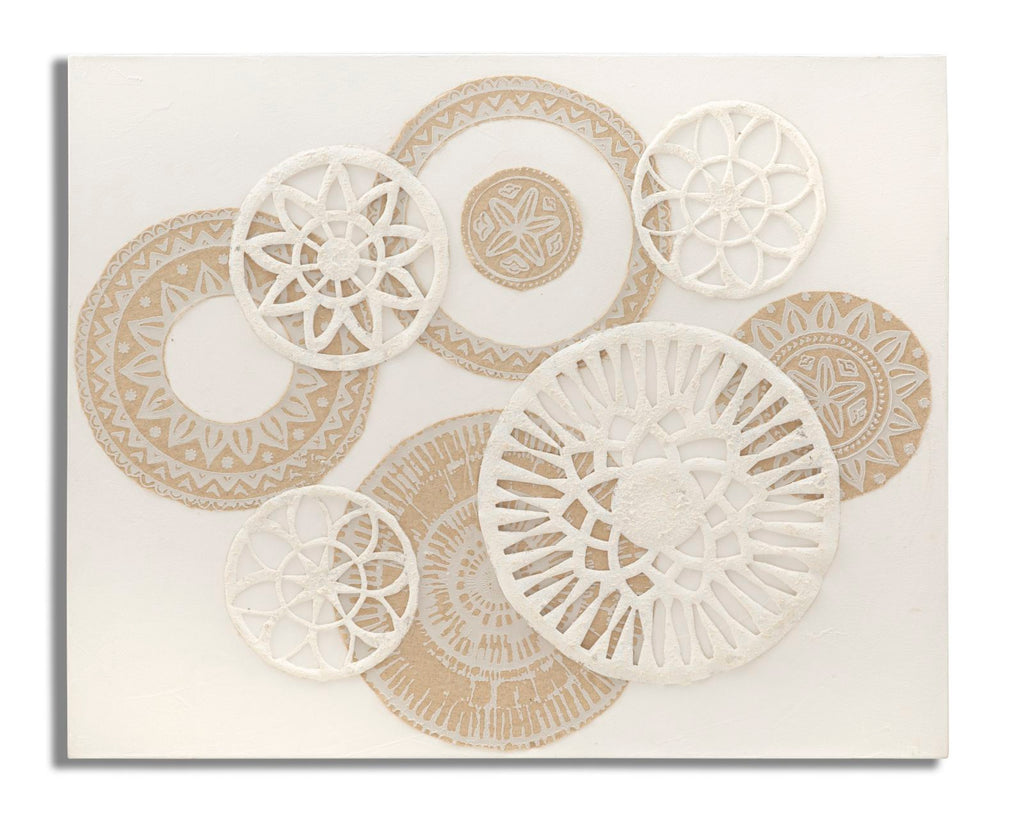 - Caratteristiche tecniche: dipinto su tela, completo di telaio, decorazioni in rilievo, motivi geometrici