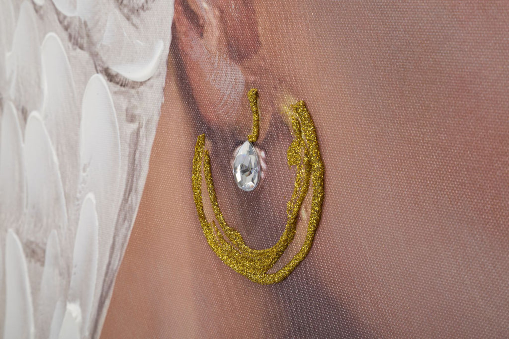 Questo dipinto su tela presenta una scena incantevole: una donna è ritratta insieme a un pappagallo, immersi in un suggestivo ambiente naturale. I colori vivaci e accesi utilizzati donano vita alla composizione, rendendo la scena ancora più vivida e affascinante. Il telaio in legno conferisce un aspetto tradizionale, mentre le eleganti applicazioni in tessuto aggiungono un tocco di raffinatezza e classe all'opera complessiva.