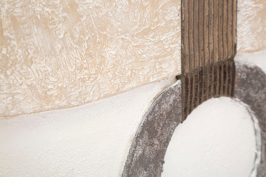 Questo dipinto su tela completo di telaio in legno è un'opera dall'audace design astratto. Le forme e i colori si fondono in una composizione dinamica che cattura l'attenzione dell'osservatore. Le applicazioni aggiungono un tocco di tridimensionalità e texture, creando un effetto visivo unico. Questo dipinto è l'ideale per chi cerca una decorazione d'arte che esprima creatività e originalità.