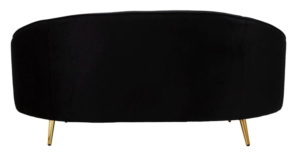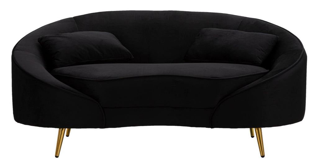 Il divanetto 2 posti in tessuto imbottito nero è caratterizzato da linee morbide e avvolgenti, che lo rendono accogliente e confortevole. Le eleganti gambe in metallo dorato aggiungono un tocco di classe e luminosità all'arredamento. Completo di due cuscini, questo divano offre un'esperienza di relax e stile impeccabile.