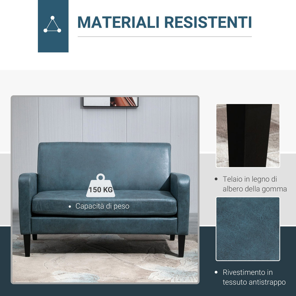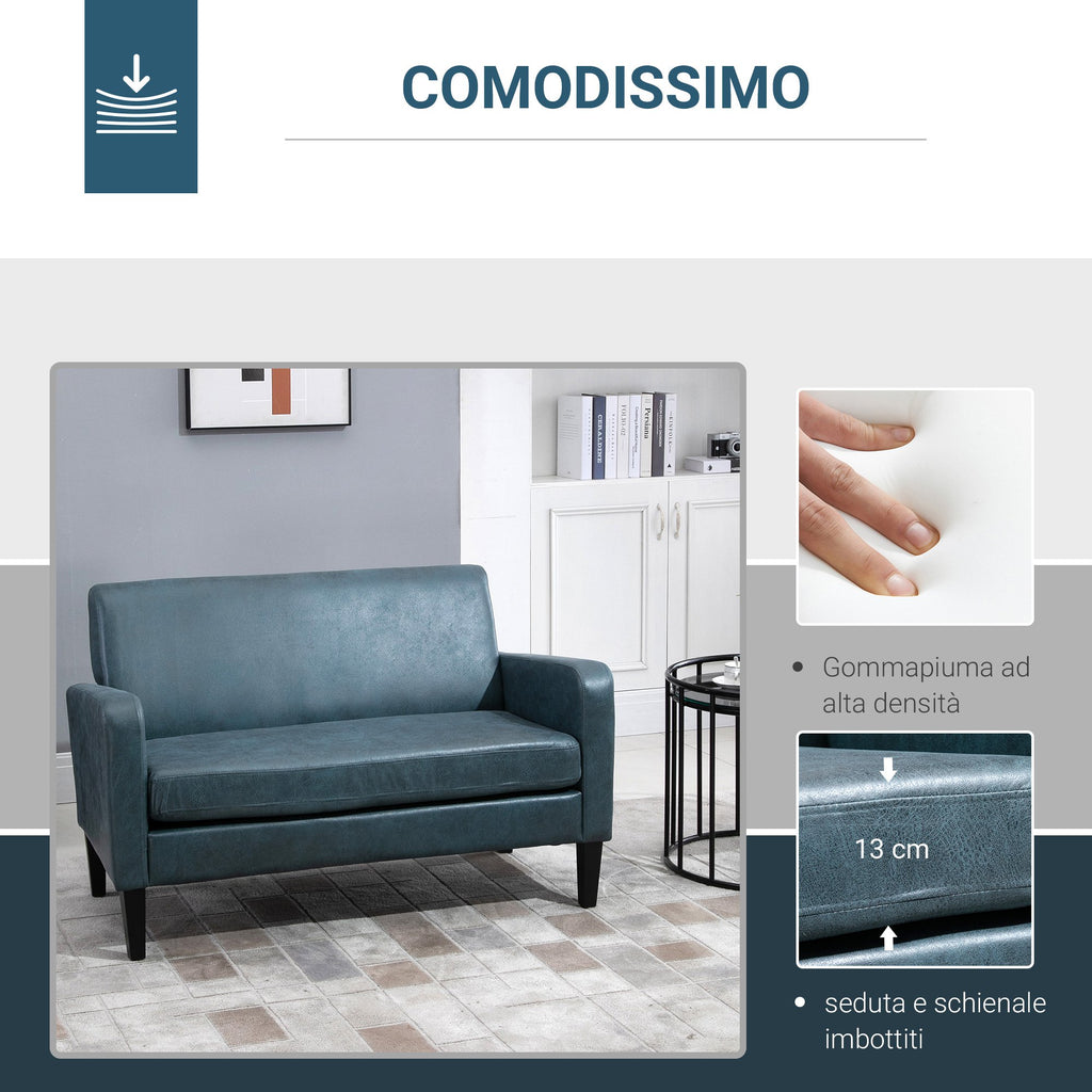 Divano 2 Posti 122x72x74 cm in Tessuto Grigio-Azzurro