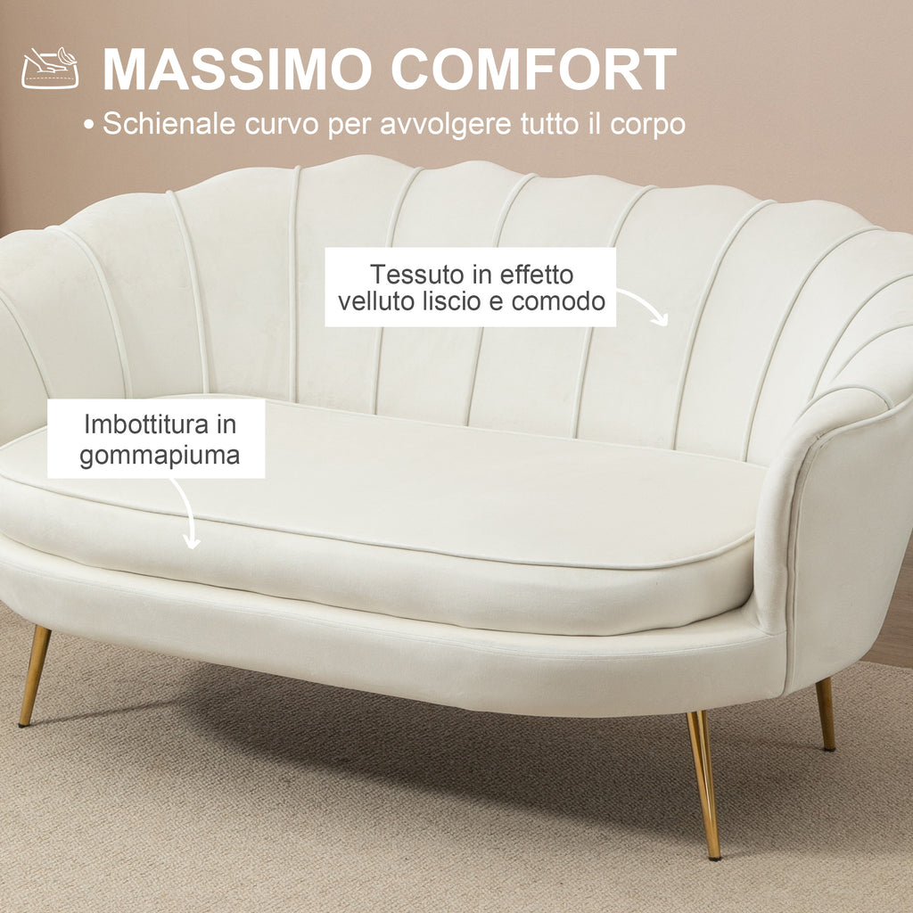 Divano 2 Posti 130x77x77 cm in Velluto Crema