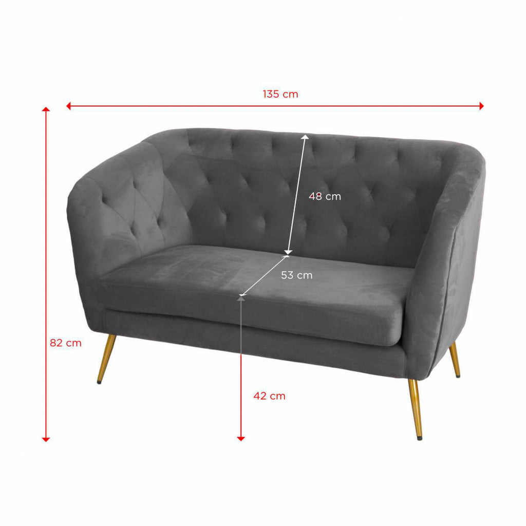 Divano 2 Posti 135x82 cm in Velluto Grigio