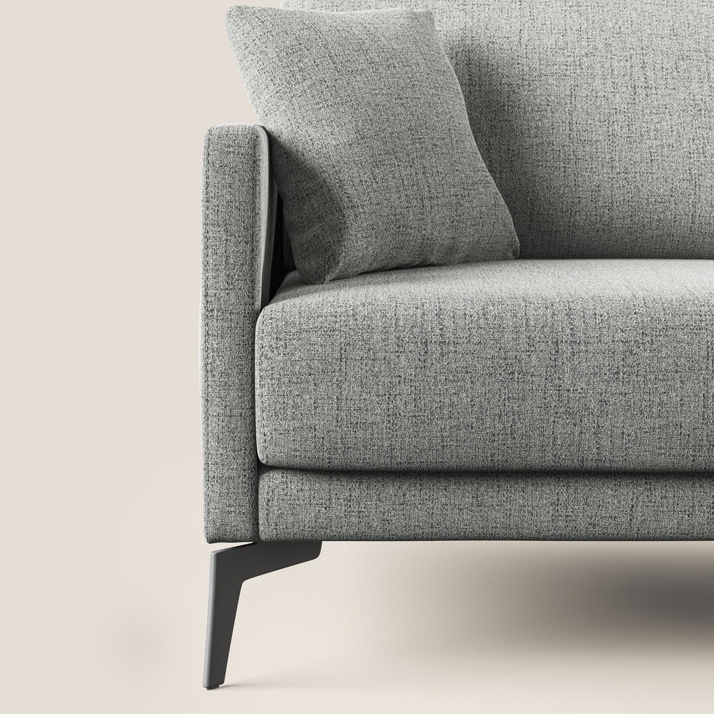 Il divano è un elegante e confortevole divano composto da un modulo da 3 posti e uno da 2 posti. Realizzato in morbido tessuto impermeabile, presenta piedini in acciaio nero, alti 17 cm. Questo divano si distingue per essere completamente sfoderabile, offrendo la possibilità di scegliere tra 11 diversi colori e varie misure per adattarsi ad ogni spazio e stile di arredamento. Realizzato al 100% in Italia, questo divano è impreziosito dalla manifattura artigianale, che si riflette nella selezione di materiali di alta qualità, nel tessuto water-repellent facilmente lavabile, nella ribattitura del tessuto cucito e nella sfoderabilità totale che semplifica la sua manutenzione. Inoltre, la seduta e lo schienale presentano un'alta densità di materiali indeformabili, garantendo un comfort duraturo. Il modello è la scelta ideale per chi cerca un divano di qualità, dal design raffinato e made in Italy.
