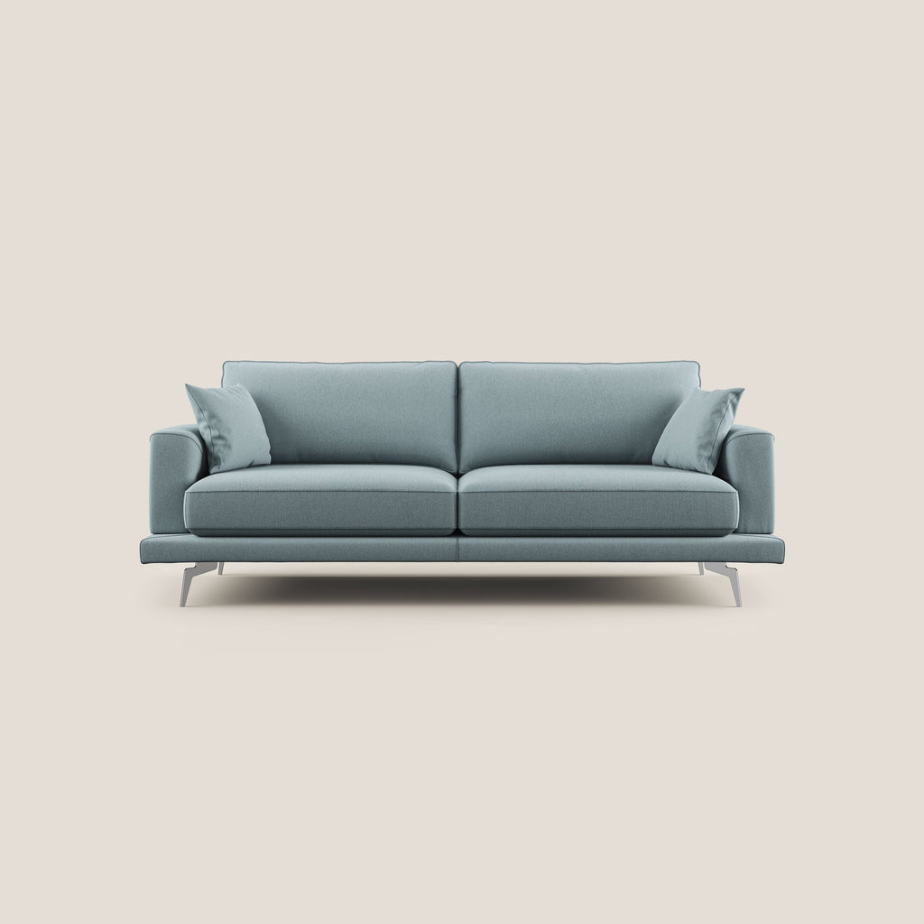 Il divano è un'opera unica nel suo design, con volumi leggeri che vengono esaltati dalla sua struttura in abete e dai cuscini dello schienale in piuma d'oca. Ogni dettaglio di questo divano è rifinito con cura, e questo si riflette nella sua qualità. Disponibile in un'ampia scelta di colori e misure, il divano si adatta a ogni ambiente.Questo divano offre anche praticità e comfort, essendo completamente sfoderabile e dotato di una doppia lavorazione sartoriale che ne evidenzia l'eccellenza dell'artigianato italiano. Il bracciolo con profilo a onda aggiunge un tocco di dolcezza alla linea moderna del salotto, mentre i piedini alti 18 cm in acciaio cromato conferiscono leggerezza al divano e facilitano la sua pulizia. In sintesi, il divano unisce estetica e funzionalità in modo impeccabile.