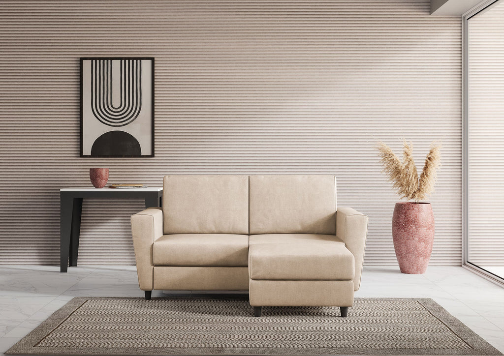 Divano 2 Posti con Pouf 152x155x85 cm Yasel in Tessuto Beige