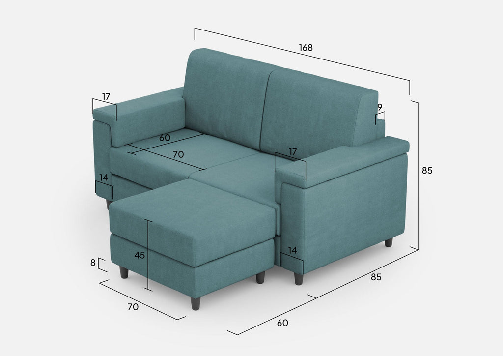 Divano 2 Posti con Pouf 168x145x85 cm Marrak in Tessuto Petrolio