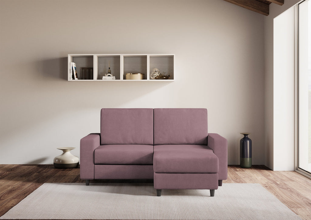 Divano 2 Posti con Pouf 168x145x85 cm Sakar in Tessuto Prugna