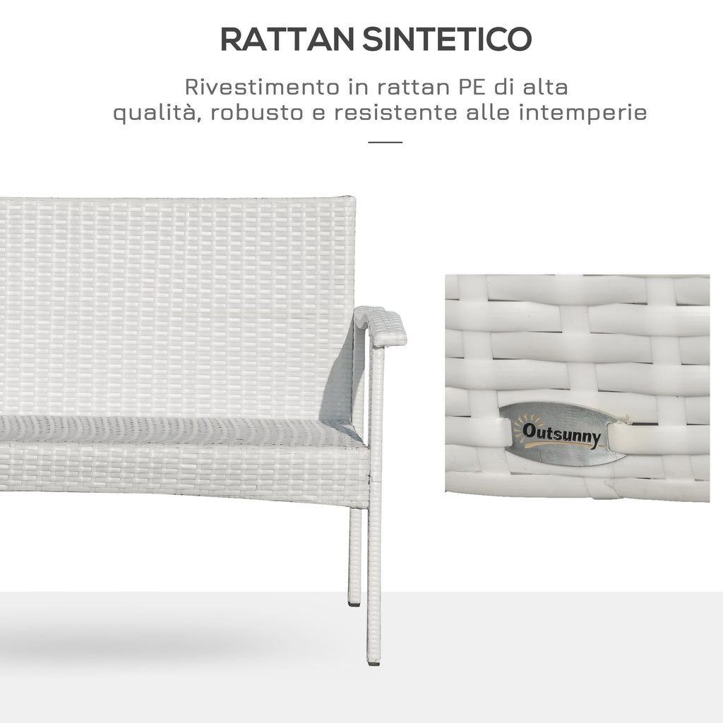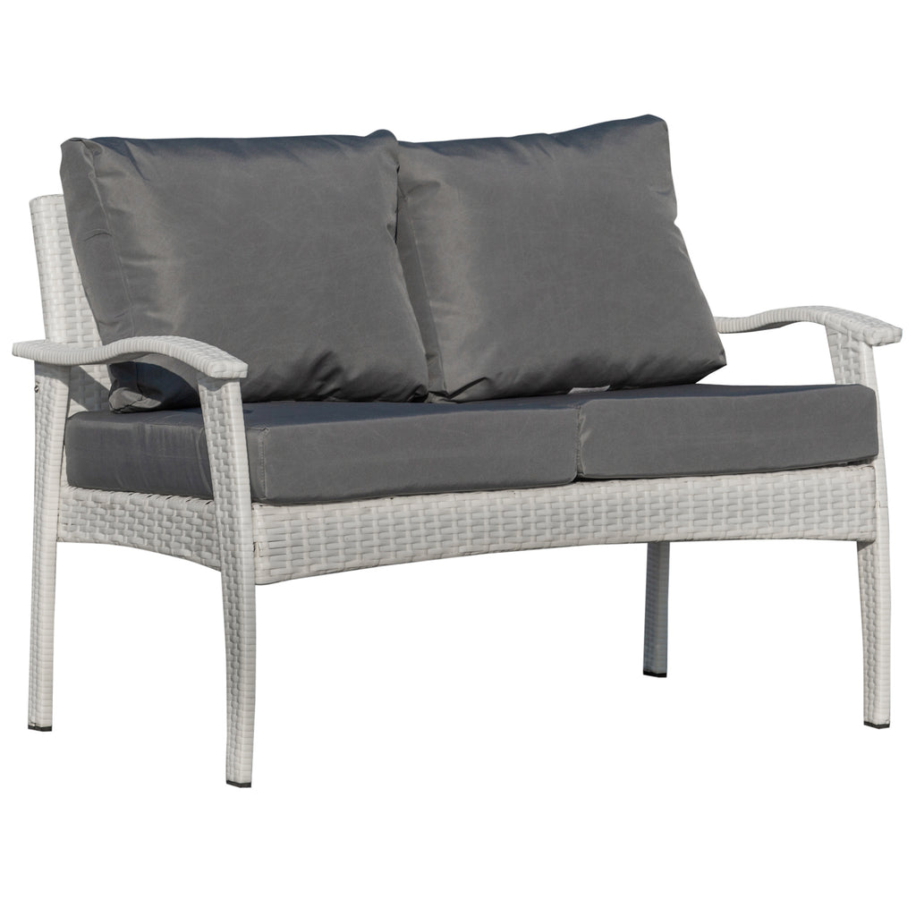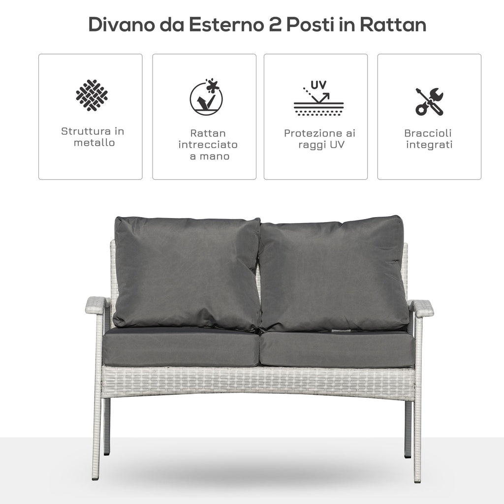 Divano 2 Posti da Giardino 120x63x77 cm in Rattan con Cuscini Bianco e Grigio