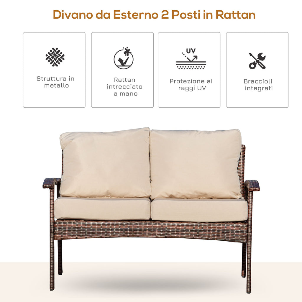 - Divano in rattan da 2 posti, perfetto per la terrazza, il giardino, il patio, ecc.