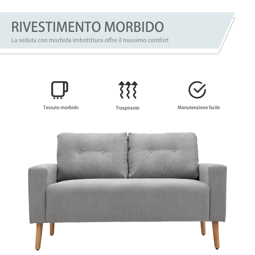 - Divano grigio a 2 posti compatto, ideale per ambienti piccoli