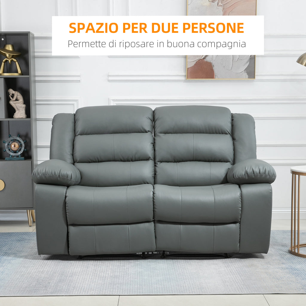 Divano 2 Posti Reclinabile 168x93x102 cm con Schienale Diviso e Poggiapiedi in Similpelle Grigio