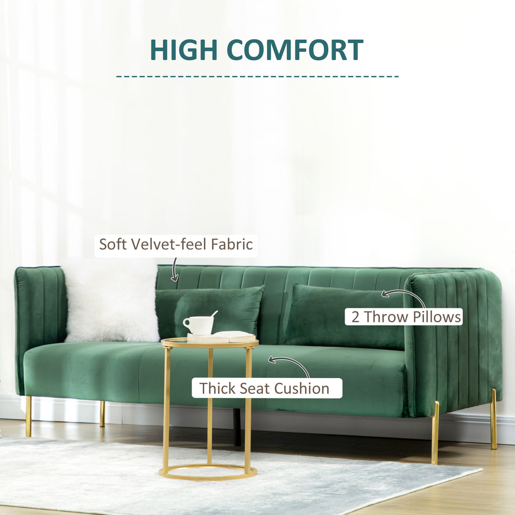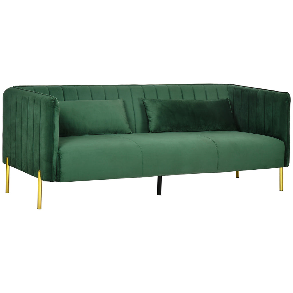 Divano 3 Posti 195x88x76 cm in Acciaio e Tessuto Vellutato Verde